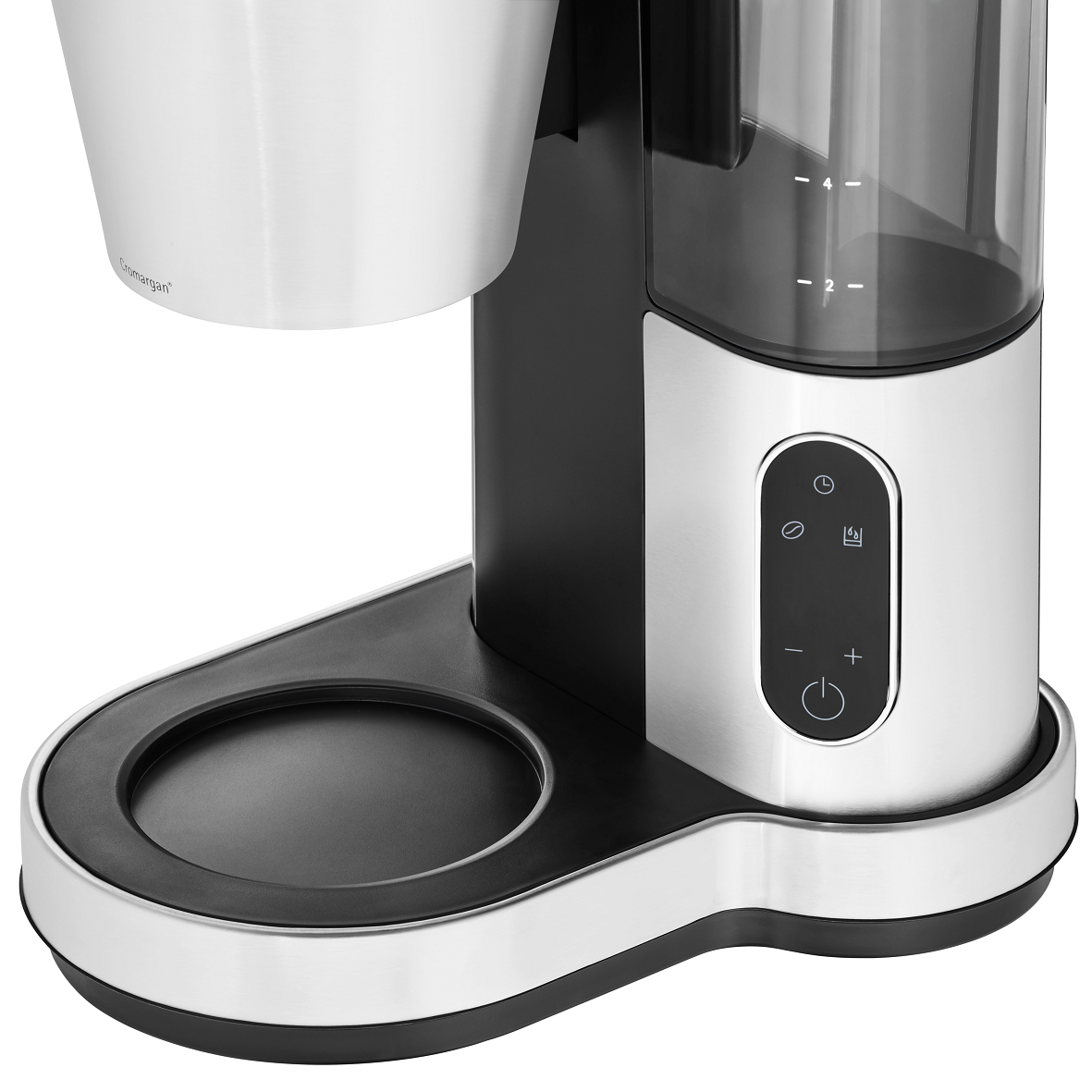 Díky plášti z matné vysoce kvalitní nerezové oceli Cromargan®, funkcí Aroma Perfection pro lahodnou kávu a dekorativním LED osvětlením, je kávovar WMF Lumero nutností pro všechny milovníky designu a kávy. Je s ním radost zacházet: Vyjímatelná nádrž na vodu má indikátor hladiny vody, který vám umožní naplnit přesný počet požadovaných šálků. Termo izolační konvice s praktickým otevíracím a zavíracím mechanismem a funkcí udržování teploty pojme až 8 šálků kávy o objemu 125 ml. Díky výkyvnému filtru lze mletou kávu přidávat snadno a bez vysypání. Vysoká teplota při vaření (až 95°C), která se rychle spouští pomocí ovládacího panelu s dotykovou funkcí, umožňuje aroma se dokonale rozvinout a vytváří intenzivní chuť kávy. Vyjímatelná filtrační vložka (1x4) má funkci drip stop zabraňující kapání vody a ochranu proti přetečení.